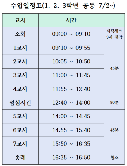 ¼ö¾÷ÀÏÁ¤ º¯°æ¾È³»(7/2~)