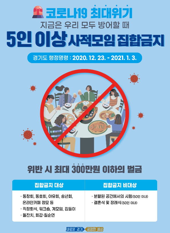 (°øÁö) 12/23ºÎÅÍ ¼öµµ±Ç 5ÀÎ ÀÌ»ó ÁýÇÕ±ÝÁö ÇàÁ¤¸í·É