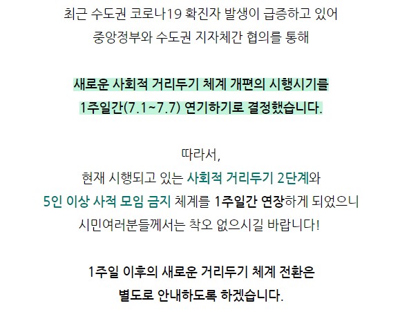 (°øÁö) 7/1ÀÏ(¸ñ)~7/7(¼ö)±îÁö 1ÁÖÀÏ ¿¬Àå/ ÇöÇà À¯ÁöµÇ´Â »çȸÀû °Å¸®µÎ±â 2´Ü°è