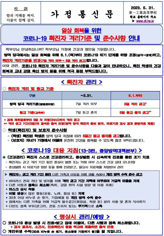 (°øÁö) ÀÏ»ó ȸº¹À» À§ÇÑ Äڷγª-19 È®ÁøÀÚ °Ý¸® ±âÁØ ¹× Áؼö »çÇ× ¾È³»