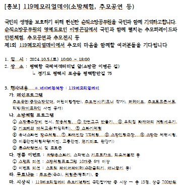 (È«º¸)Á¦ 1ȸ 119¸Þ¸ð¸®¾óµ¥ÀÌ Çà»ç ¾È³»(¼Ò¹æÃ¼Çè, Ãß¸ð°ø¿¬ µî)